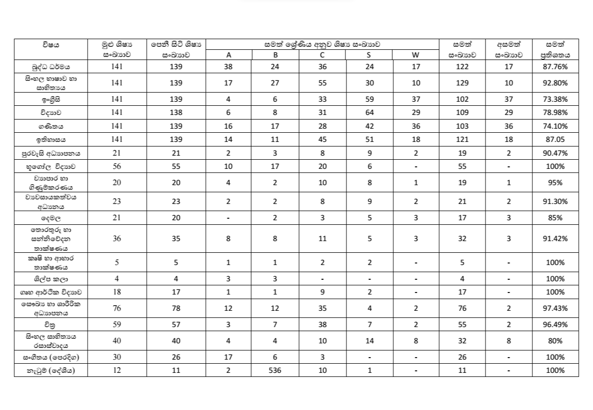 2021 සාමාන්ය පෙළ ප්රතිපල විශ්ලේෂණය